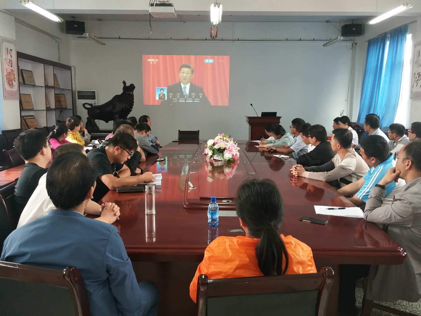 5月4日上午10时,纪念马克思诞辰200周年大会在人民大会堂举行,中共中央总书记、国家主席、中央军委主席习近平出席大会并发表重要讲话。lol博彩 在校无课教师及教辅人员在综合楼421会议室收听收看了此次大会。通过收听收看此次大会,lol博彩 教职工第一时间学习了习近平总书记在纪念马克思诞辰200周年大会上的重要讲话,深入了解了马克思主义的重大意义、世界影响和当代价值,为今后全院教职工学精、悟透、用好马克思主义奠定了坚实的基础。