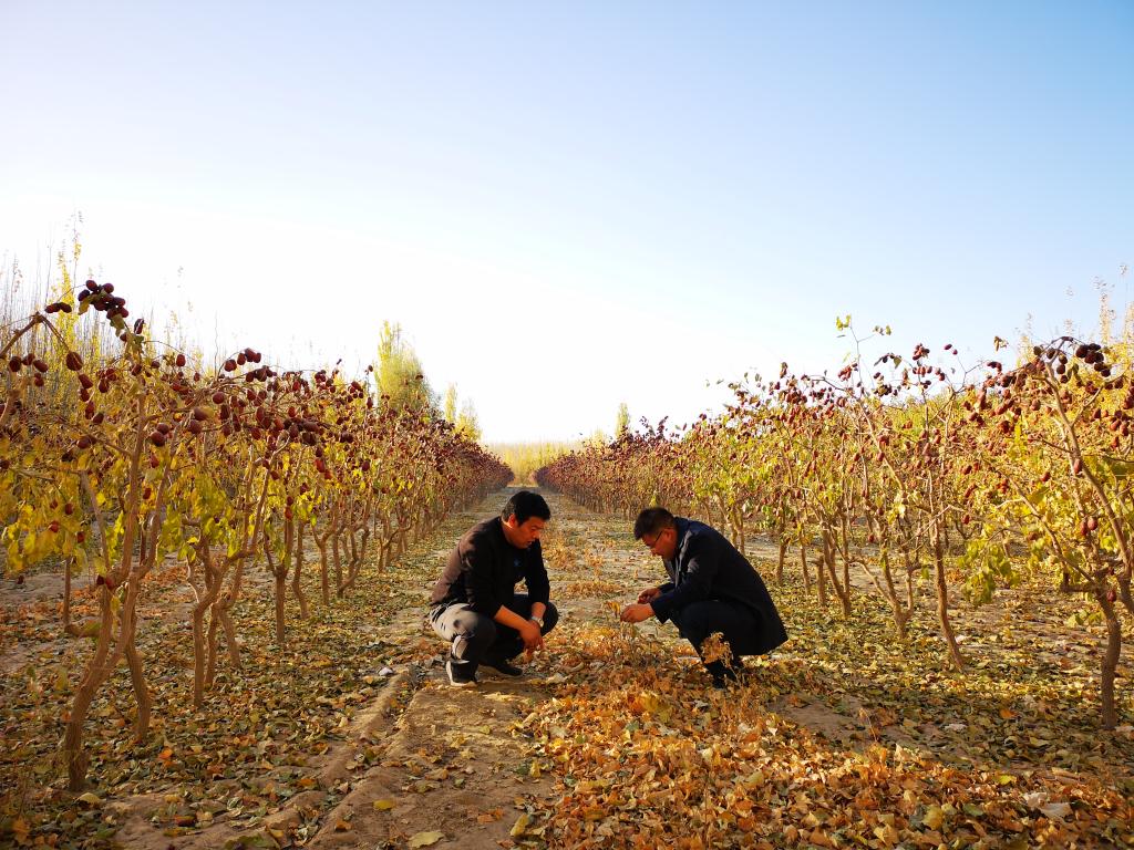在“访惠聚”工作队的协调下,服务团队到喀孜纳克村的农机大户进行实地调研,深入了解村农机保有量和使用、维护、保养的基本情况。到农户田间地头对红枣、核桃种植情况和土地沙化情况进行了实地调研,并提出绿肥改良沙土的具体措施。