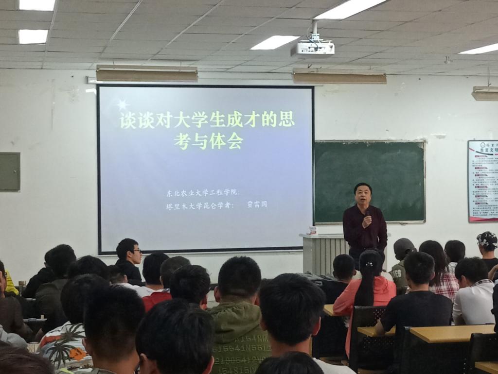贾富国教授为学生做了关于《谈谈对大学生成才的思考与体会》的报告,通过自己如何将研究生曾勇(塔里木大学毕业生)培养为优秀的博士、青年科学家的的亲身体会,以多年培养学生成长、成才的经历,为lol博彩