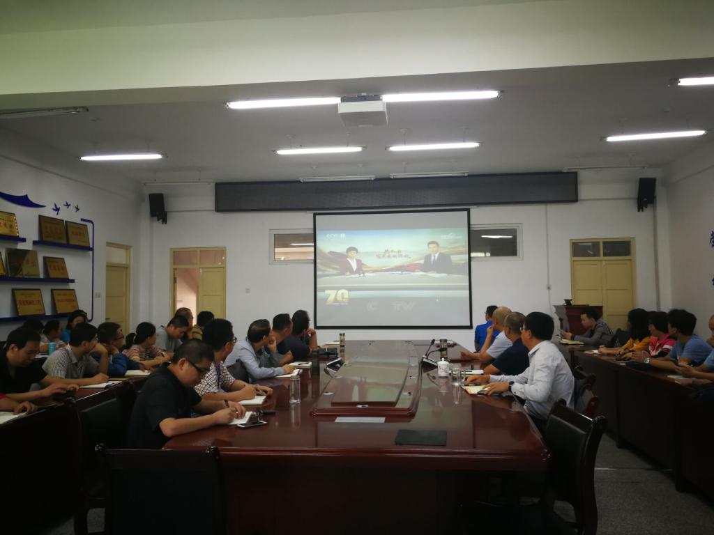 党委副书记、院长弋晓康,党委副书记胡松林,副院长王旭峰、张宏及全体在校教工在工科楼229会议室收听收看了中央电视台新闻频道播出的庆祝新中国成立70周年大型直播特别节目《壮丽70年·奋斗新时代—共和国发展成就巡礼·新疆生产建设兵团篇》直播实况。