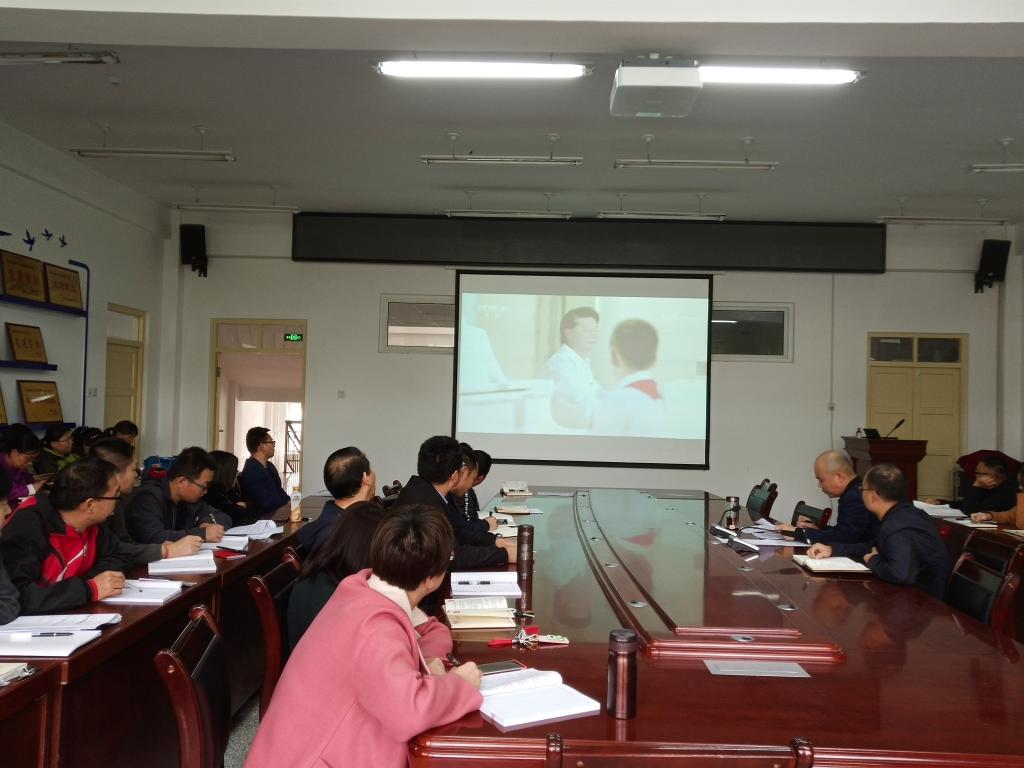 领导干部及全体教工在工科楼229会议室集中观看《榜样4》。