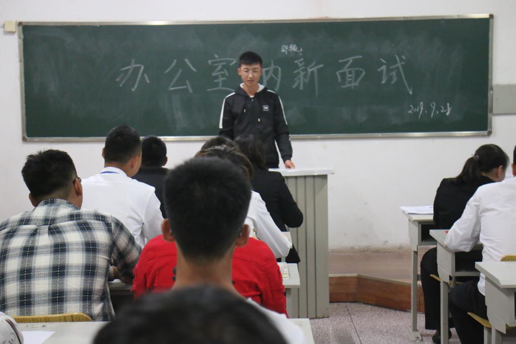 28日晚,各部门在二号教学楼各指定教室进行纳新面试,面试过程中,各部门参加面试的同学按照规定依次上台进行自我介绍、个人才华展现,面试人员进行现场提问考察其临场反应,以便更好做出选择。