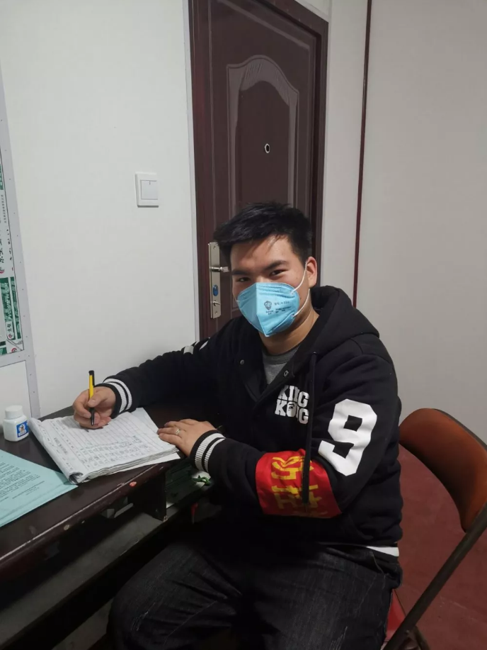 参加此次疫情防控志愿者的一名学生,家乡在山西省阳泉市郊区荫营镇三都村,志愿服务时间是晚上9点到第二天早上7点。每天,当大多数人还沉浸在梦乡的时候,张瑞慧已经准时出现在村子里的大门口了,开始忙碌有序的疫情防控工作。“打赢这场没有硝烟的战‘疫’,每个人都应当作出努力。作为大学生志愿者,能够参与其中贡献力量,我感到很光荣。”张瑞慧一边对来往的车辆进行登记一边说。“父母从小就教导我有国才有家,如今全国上下齐心协力防控疫情,作为一个塔大学生,很幸运能作为一名志愿者参加这次战‘疫’,为这场战役贡献力量。要相信没有一个冬天不会过去,没有一个春天不会到来。“疫情就是命令,防控就是责任”,作为一名胡杨学子,在疫情面前一定要不怕困难、不惧风险、坚持到底、直到疫情结束,武汉加油!中国加油!”