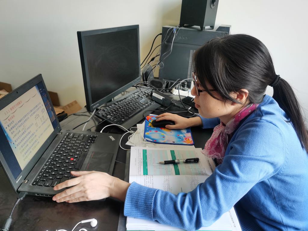 上!经过一个晚上的思考,王老师决定积极面对现存的各种问题,没有条件想办法创造条件,一定要保证按时开展在线教学工作。没有电脑,立即在京东商城买;没有网线、路由器就到村里面其他人家去借;没有专用空间,就在卧室里面坐在小板凳上,电脑放到床头柜上;没有安静的授课环境,每次上课时就让家人带着3个小孩到家外边玩;没有课件资源,就联系校内的老师到其住所打开电脑把课件发过去……,经过认真的准备,终于克服了各种困难,保证了在线授课的顺利进行。
