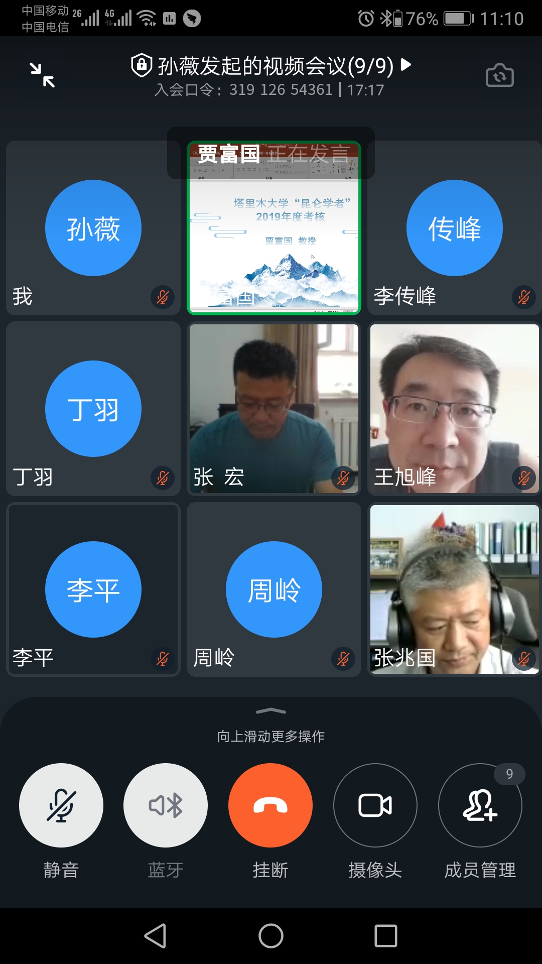 使用钉钉召开线上2019年度“昆仑学者”考核交流会。lol博彩