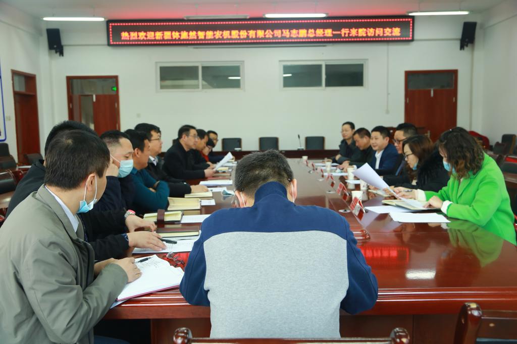 2月23日,新疆钵施然智能农机股份有限公司沙雅分公司马志鹏总经理一行6人来院访问交流。在工科楼229会议室召开座谈会,lol博彩