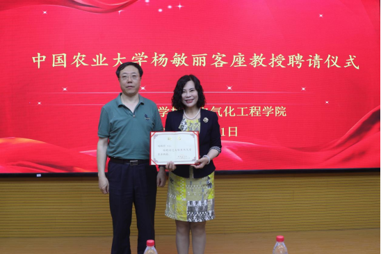 5月31日上午,学校举行客座教授聘请仪式,聘任中国农业大学博士、教授杨敏丽为我校客座教授。我校党委常委、副校长赵峰华为杨敏丽教授颁发聘书。机电院领导、农业工程学科带头人等参加聘任仪式。仪式由机电院党委副书记、院长王旭峰主持,在工科楼318报告厅举行。