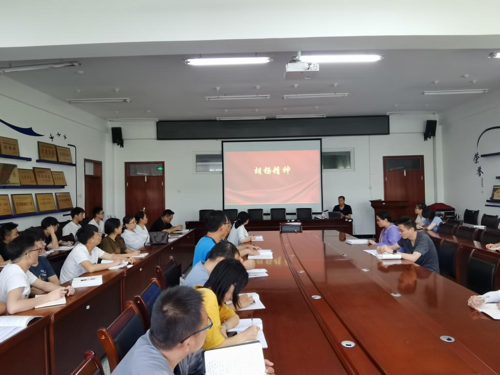 张有强以《胡杨精神》为主题,对胡杨精神的内涵、意义等方面进行了深入浅出的讲解。同时由以第三次中央新疆工作座谈会会议精神为纲领,要求大家紧紧围绕新疆工作总目标,落实立德树人根本任务,践行胡杨精神和兵团精神,大力培养爱国爱疆、担当奉献的社会主义建设者和接班人,奋力推进兵团特点、南疆特色高水平大学建设,为服务兵团发挥特殊作用、推进新疆社会稳定和长治久安作出新的更大贡献。同时希望各位教工在教学工作中,要以认真负责的工作态度对待每一项任务,要行为示范,不断汲取新知识,迸发新力量。张有强表示无论身处何地,都要有顽强的毅力和坚定的信念,用胡杨精神育人,要不忘初心,恪尽职守。