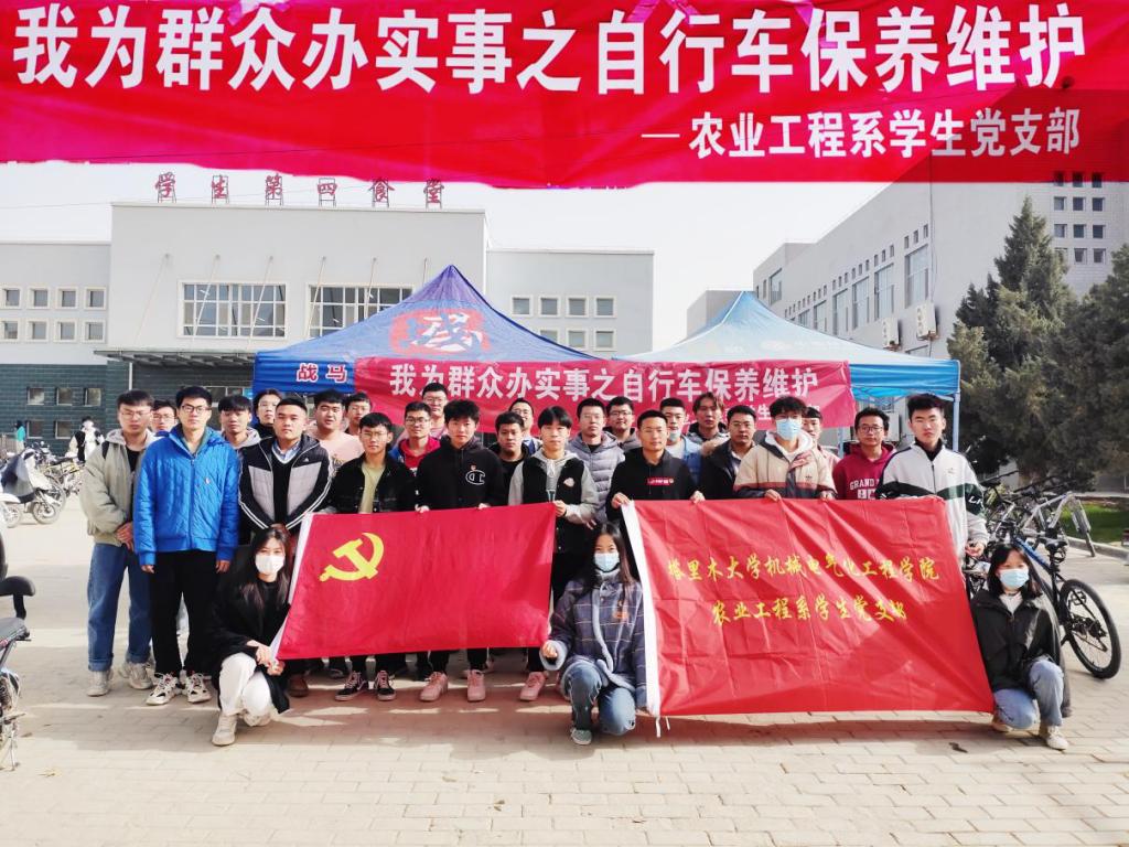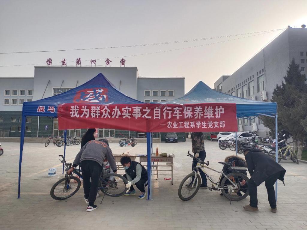 农业工程系学生党支部以“我为群众办实事”为落脚点,强化务实为民意识,聚焦同学们的难事、急事。11月6日-7日,在西区二号食堂前开展了为期两天为学校师生的自行车免费维护和保养活动。共计44名支部成员参与此次活动,对学校师生236辆自行车进行了维护和保养。