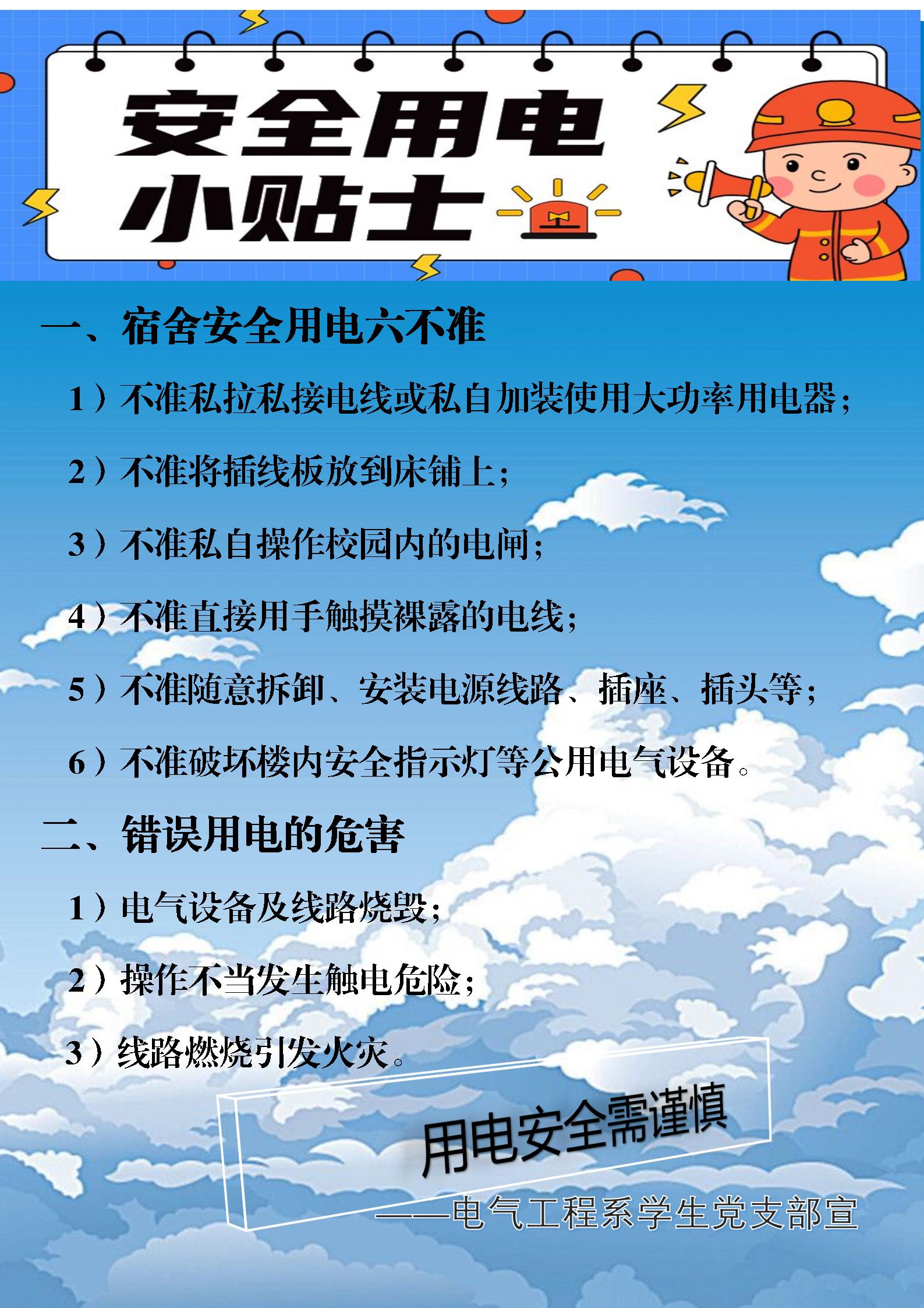 为积极营造和谐、安全、健康的宿舍环境,加强学生生活用电基本常识,11月24日,电气工程系学生党支部开展以“我为群众办实事·用电安全宣讲”为主题的活动。活动在四号食堂门前和lol博彩