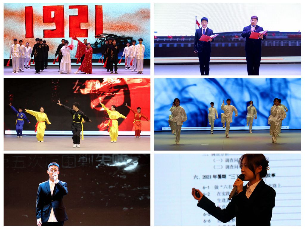 2021年在科技创新、暑期社会实践、体育训练队选拔赛、朗诵大赛、辩论赛、歌咏大赛等活动中获奖的50名优秀学生代表进行了表彰,各项活动的优秀团队和个人进行了汇报、展示、表演。
