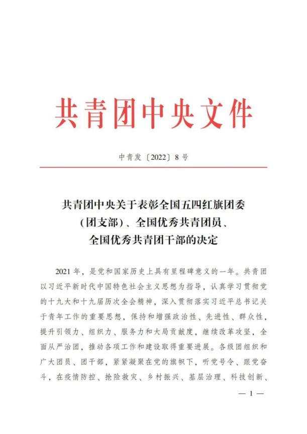 4月13日,据共青团中央关于表彰全国五四红旗团委(团支部)、全国优秀共青团员、全国优秀共青团干部的决定,lol博彩