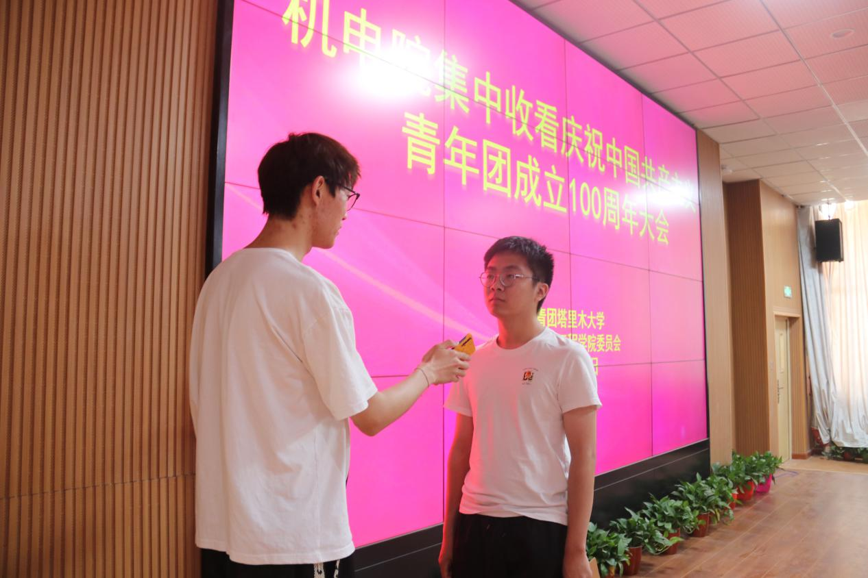 机电工程2020级4班王磊说道:在观看建团100周年庆祝大会后,我认识到青年是这个时代发展的重要组成部分,新时代需要有志青年,也离不开青年的责任与担当。历史的沉淀为我们带来了一份厚礼——胡杨精神,作为胡杨学子的我们,有义务弘扬胡杨精神,这精神是我们的信念之基,我愿以胡杨精神为魂,在祖国最需要我的地方奉献我的青春
