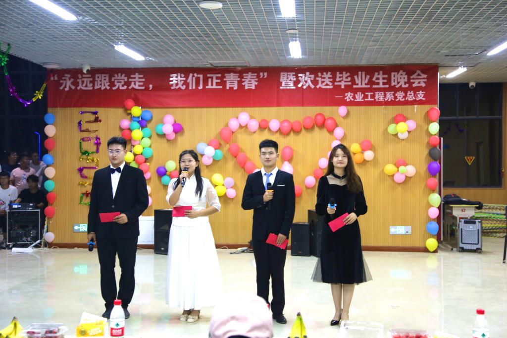 时光荏苒,且待芳华,为歌颂党的伟大成就,继承和发扬党的光辉传统和优良作风,同时为了表达对毕业生的真挚祝福,5月29日晚,机电院农业工程系教师党支部、学生党支部在东扩区图书馆一楼开展“永远跟党走 我们正青春”暨欢送毕业生晚会。lol博彩