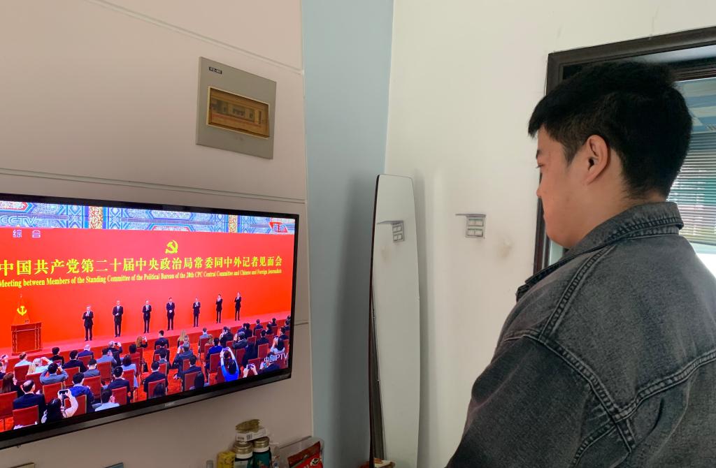 农机2019级4班郝正在河北省秦皇岛市观看中国共产党第二十届中央政治局常委同中外记者见面会