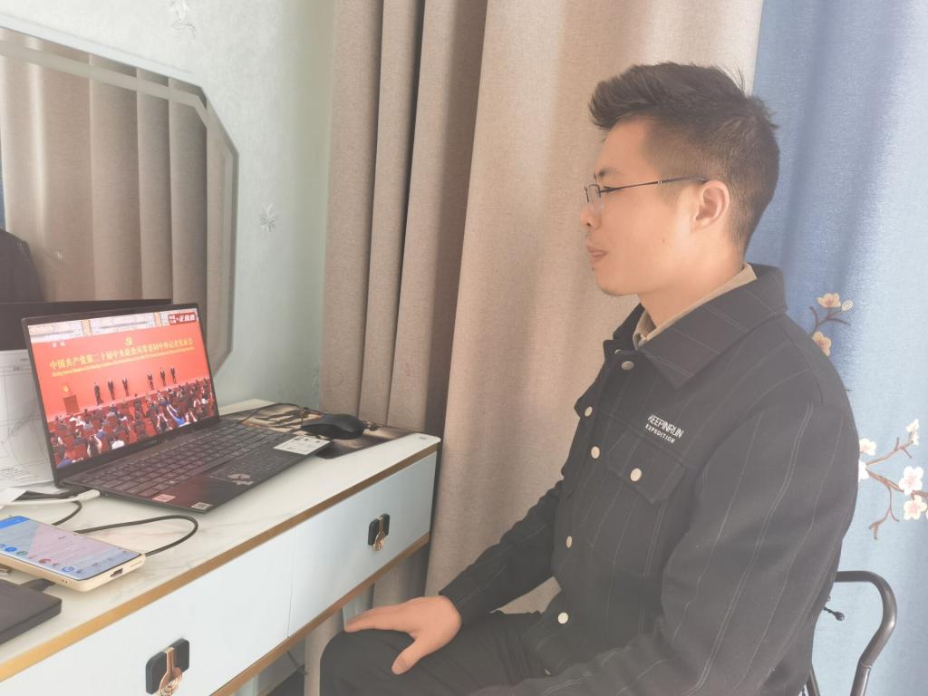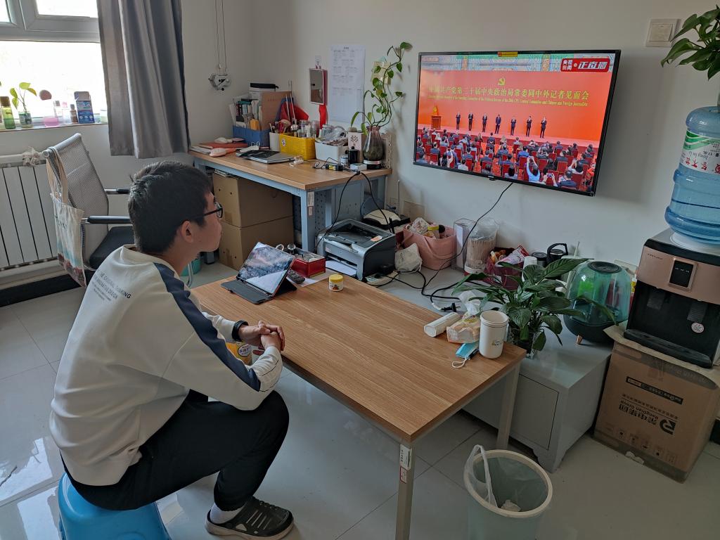 电气工程系教师王建平在塔里木大学教工11-3-505观看第二十届中央政治局常委记者见面会