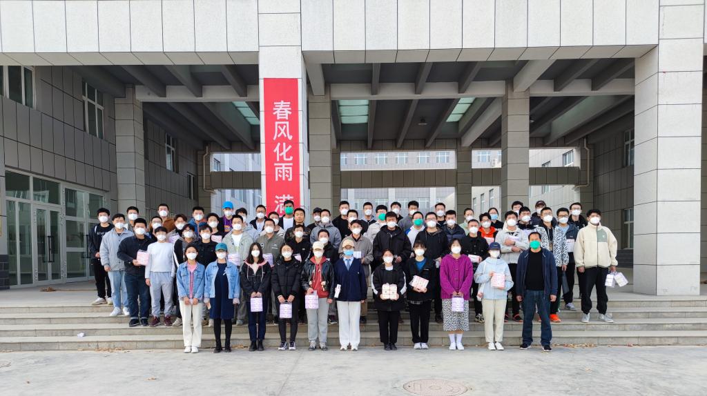 活动结束后,张有强为参与活动的研究生送上慰问品并合影留念。