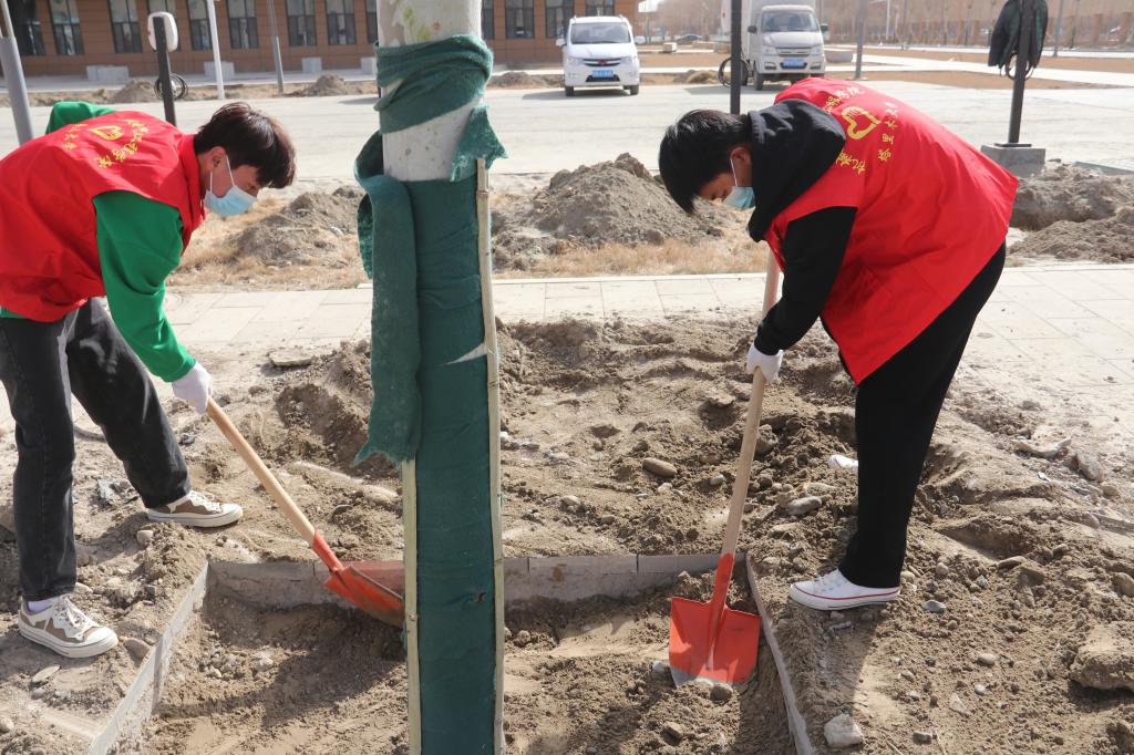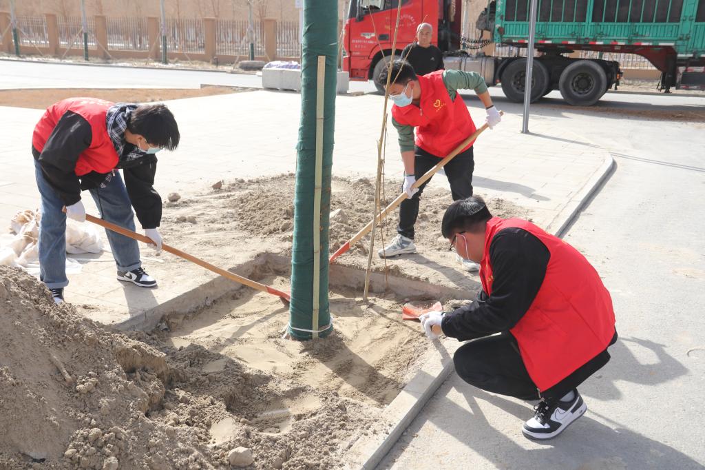 植树现场,志愿者们以饱满的热情投入到植树劳动之中,挥锹铲土、扶直大树、培实新土,每道工序都认真细致,一丝不苟,处处都是忙碌的身影。在大家的努力之下,50棵大树在春风中昂然挺立,焕发出勃勃生机,为lol博彩