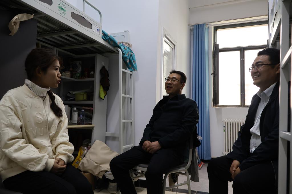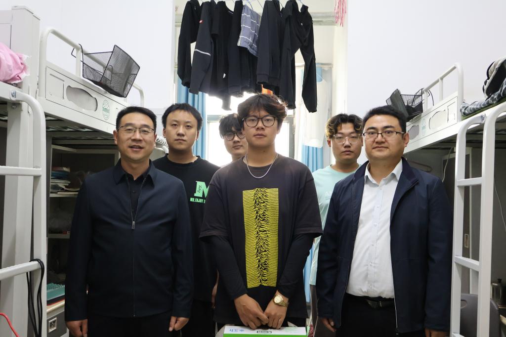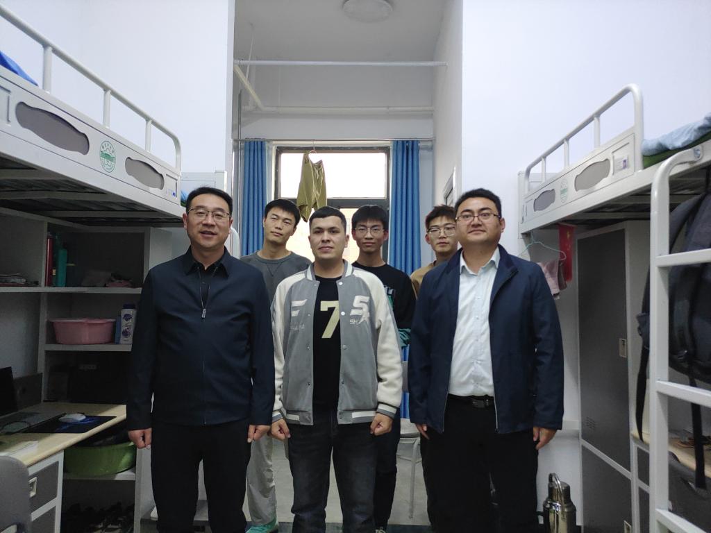 党委书记王旭峰、党委副书记李勇及辅导员一行深入学生宿舍走访慰问。