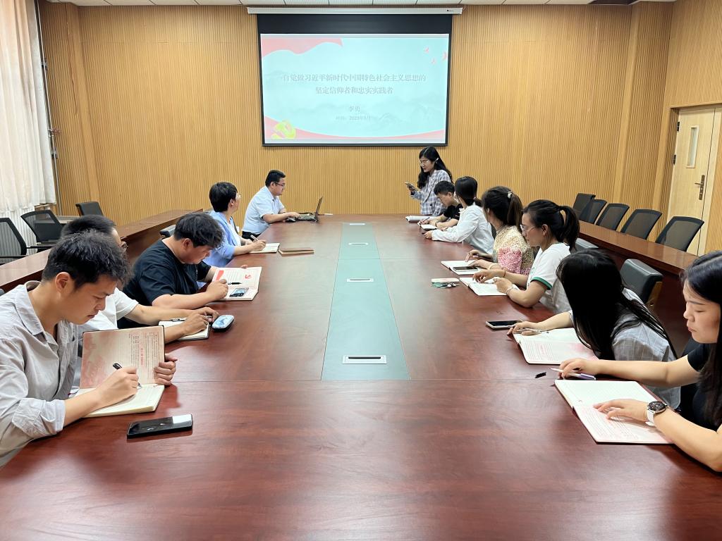 党委副书记李勇在D101会议室作题为《自觉做习近平新时代中国特色社会主义思想的坚定信仰者和忠实实践者》专题党课。办公室教工党支部全体党员和团学干部参加学习。