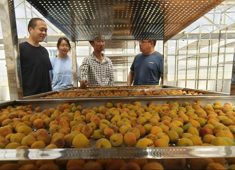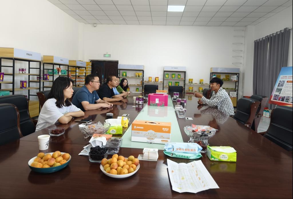 吊干杏提质增效科技服务团队成员王宪磊、闫同斌、胡瀛月等到第一师四团吊干杏加工企业、吊干杏种植基地等开展科技服务工作,团队成员深入吊干杏加工生产车间,与企业工人等就吊干杏的晾晒、干燥、清洗、包装等进行深入交流,并就吊干杏加工各环节遇到的问题进行深入探讨并给予指导。