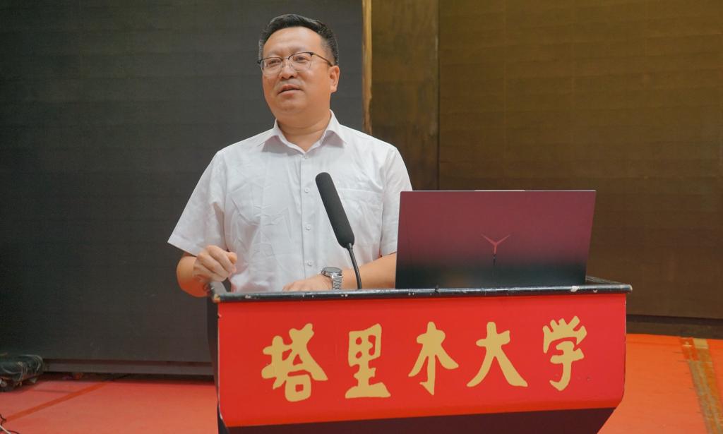 王旭峰首先对新同学加入塔里木大学,加入机电院表示热烈欢迎,接着提出了三点期望:一是希望同学们在宁静中追随本心,努力充实精神,直面内心。二是在宁静中坚守初心,抵御诱惑,不忘来时路。三是在宁静中笃学砥砺,“夫学须静也,才须学也,非学无以广才,非志无以成学”。学习不仅需要安静的环境,更需要安静的内心。同时祝愿2023级新生都能拥有美好难忘的校园生活,在机电院走过精彩人生,走向锦绣前程。