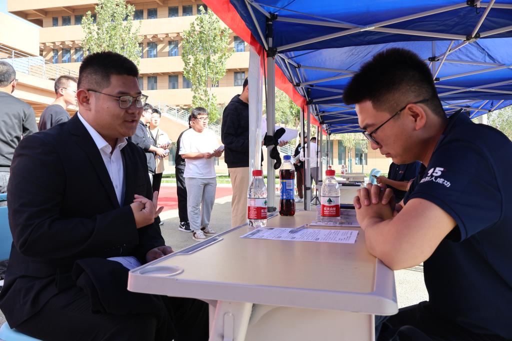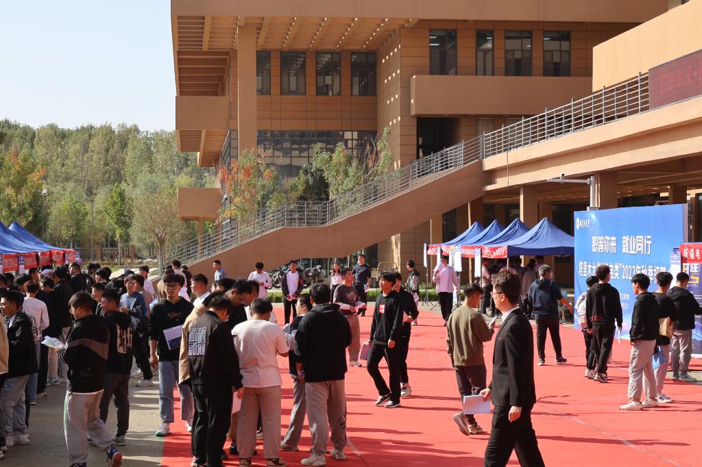 在新校区一期C座举办职等你来·就业同行-塔里木大学“机电类”2023年秋季招聘会,校党委常委、副校长林松涛到现场检查指导工作。