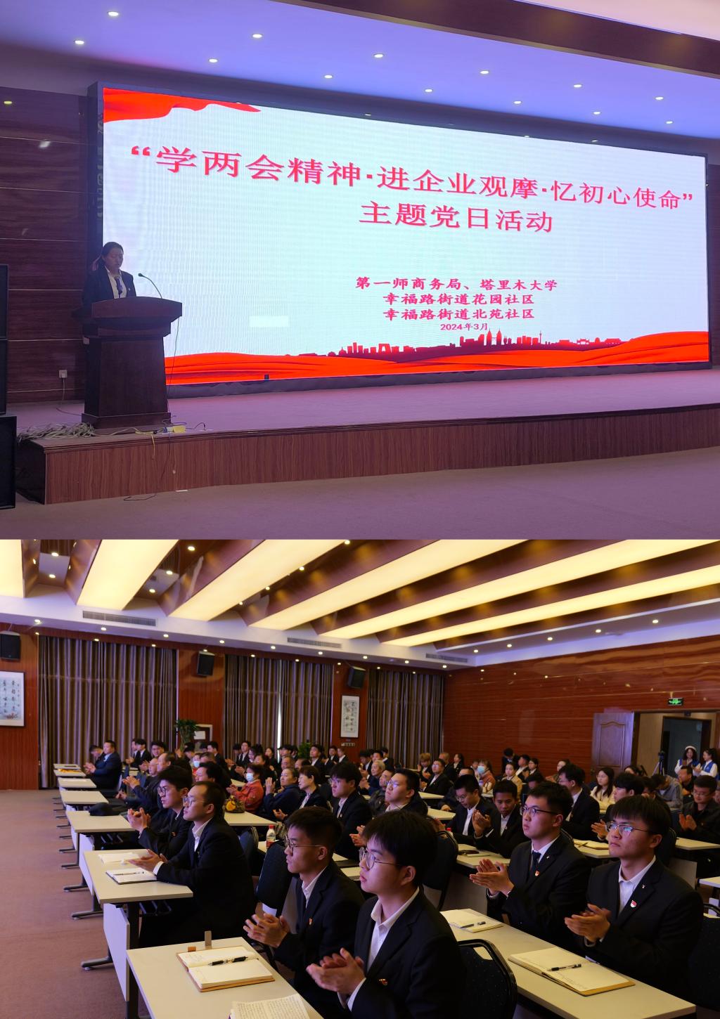 为学习贯彻2024年全国“两会”精神,将学习贯彻习近平新时代中国特色社会主义思想落到实处,电气工程系学生党支部与北苑社区党总支于3月30日在洁丽雅联合举办“学两会精神·进企业观摩·忆初心使命”主题党日活动。电气工程系学生党支部、机械设计学生党支部、洁丽雅以及北苑、花园社区党总支全体党员参加。活动由北苑社区党总支书记张锦萍主持。