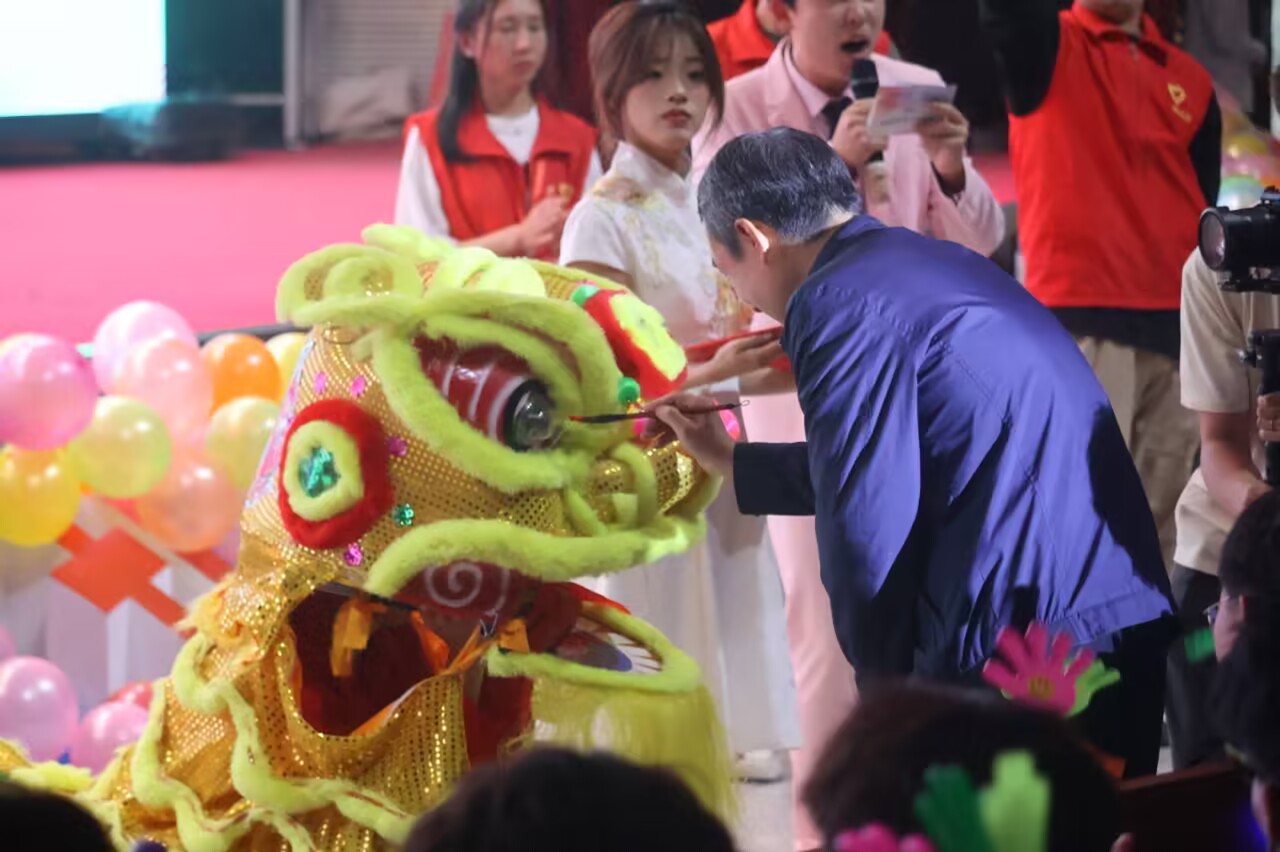 在暖场的“醒狮”环节中,汤校长为舞狮点睛,赋予狮子生命力和活力。他手持朱砂笔,一点左眼,灵气满身,祝愿机电lol博彩