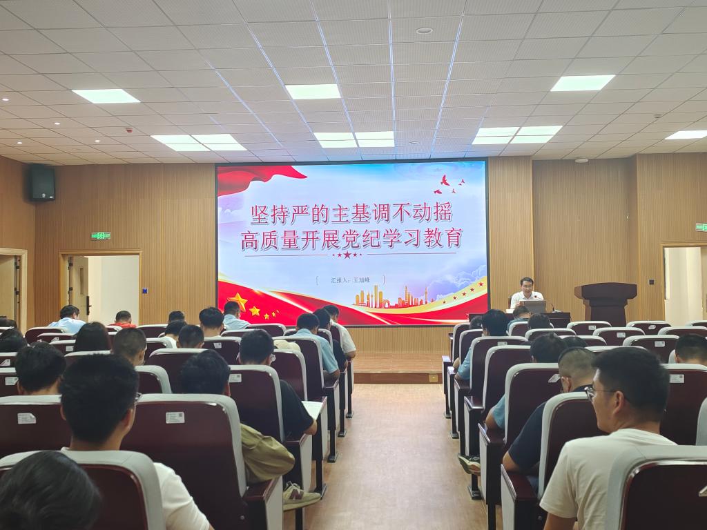党委书记王旭峰为全院教工讲授题为“坚持严的主基调不动摇,高质量开展党纪学习教育”主题党课。