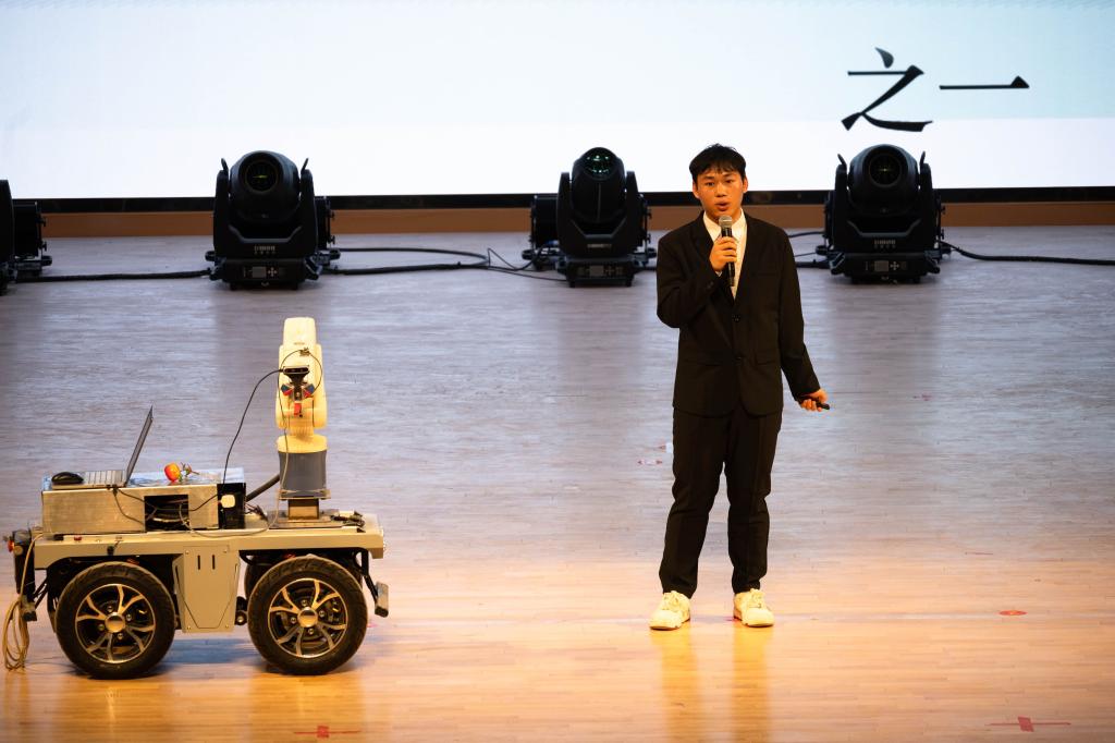 展示会上,番茄采摘机器人、四足行走机器人、沙漠边缘采样仿生蜘蛛机器人、光伏电池板清洗机器人、物流搬运机器人吸引着全场目光。无人机构造原理讲解、机器人动作演示,把创新实验成果通过通俗易懂的方式让大家了解科技产品背后的奥秘,科普与展示融于一体、创新与原理有机结合,为大家打开了一扇通往“未来科技”的大门,引来阵阵掌声。