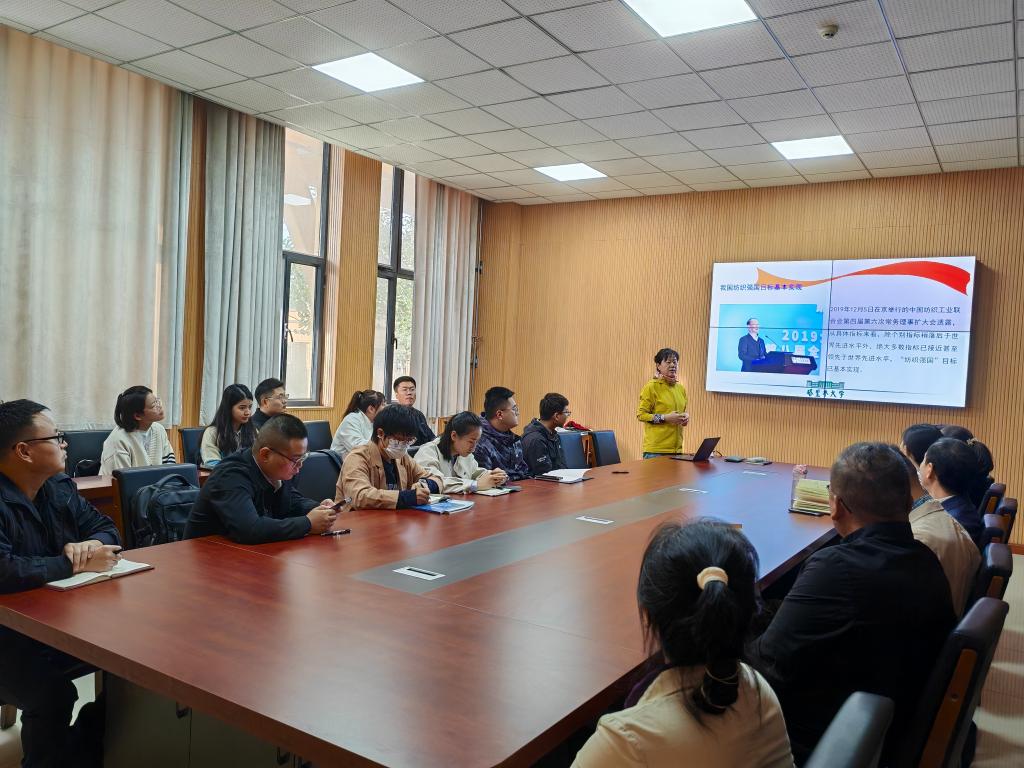 副院长张有强、卢雨正及实验中心教工党支部和基础与纺织教师党支部的所有教工聆听了此次的宣讲活动。