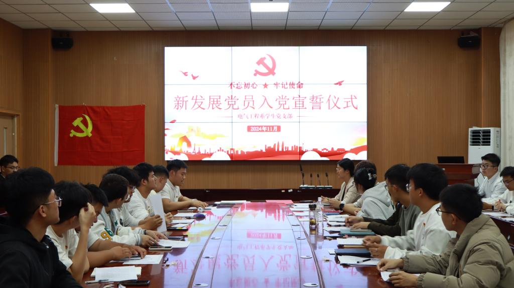 为进一步加强新发展党员的党性教育,切实增强责任感、使命感和归属感。11月1日下午,电气工程系学生党支部在D108会议室举行2024年下半年预备党员入党宣誓仪式
