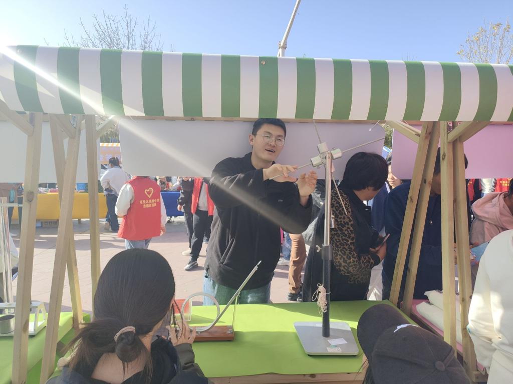 科普基地志愿者在社区集市上设立科普摊位,带领社区群众动手制作小型物理实验模型,向大家普及物理学的基本原理和日常应用。通过简单易懂的方式,提升社区群众对科学知识的兴趣,增强居民的科学素养。此外,活动现场还包括了传统文化展区、野外植物采集记录签展示、民族特色表演等。