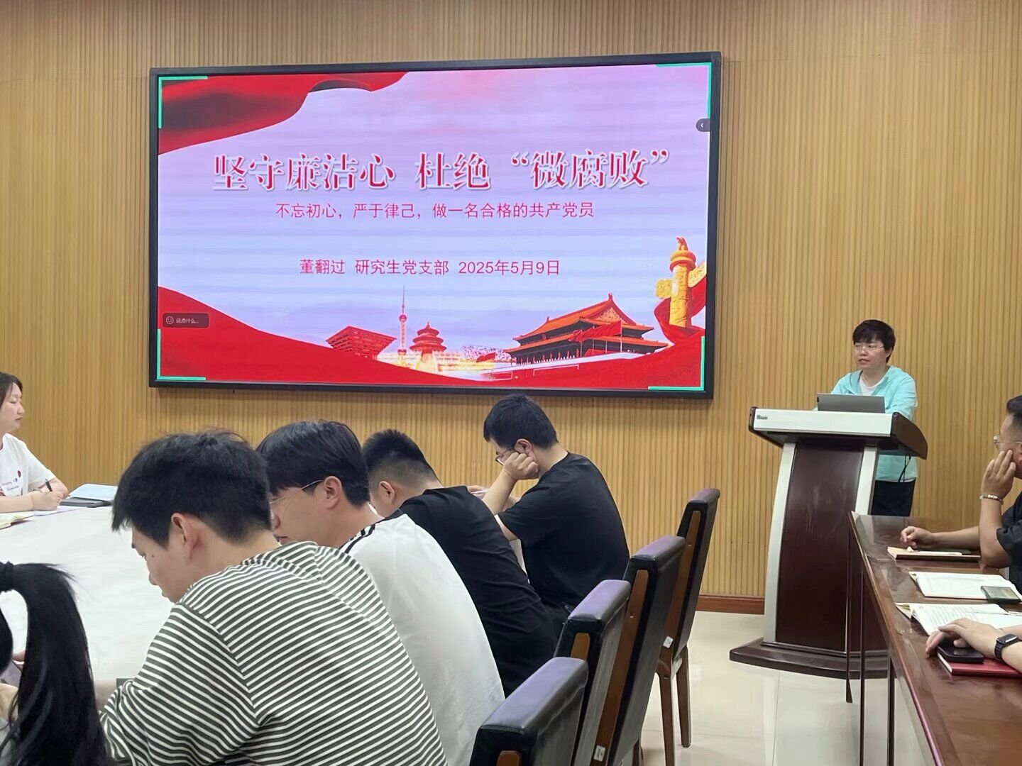 5月9日,研究生党支部在机电楼D102会议室举办“传承五四薪火,赓续红色血脉”党旗映天山主题党日系列活动,旨在弘扬五四精神,深化爱国主义教育,坚定党员理想信念,党支部全体党员参加,党支部书记董翻过主持。