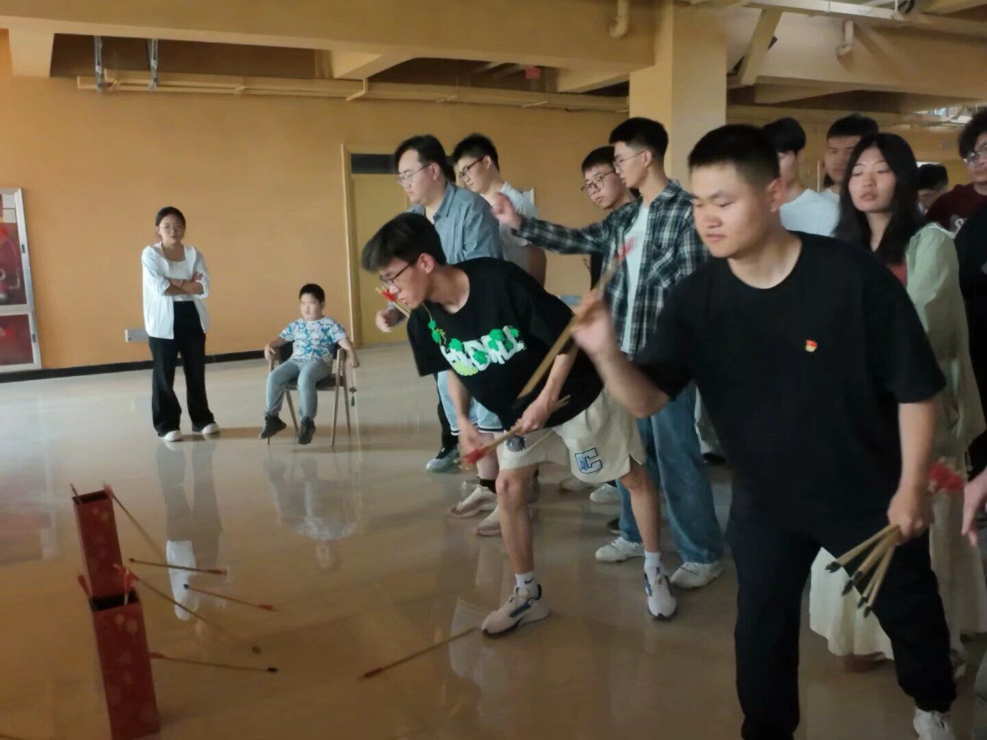 为增添活动的趣味性,本次主题党日特别增设了传统投壶游戏环节。党员们分组竞技,手持箭矢,瞄准壶口,现场欢呼声与掌声不断。投壶不仅考验了大家的专注力与技巧,更让党员们在轻松愉快的氛围中感受到古代礼仪文化的魅力。