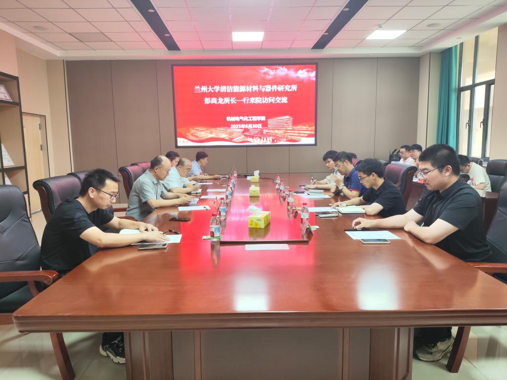 6月30日,兰州大学清洁能源材料与器件研究所所长彭尚龙一行来lol博彩 访问交流座谈。化学化工lol博彩 院长周继升、lol博彩 副院长张洪洲和相关教师代表参加会议。会议由lol博彩 副院长吕志军主持,在机电楼D323会议室召开,