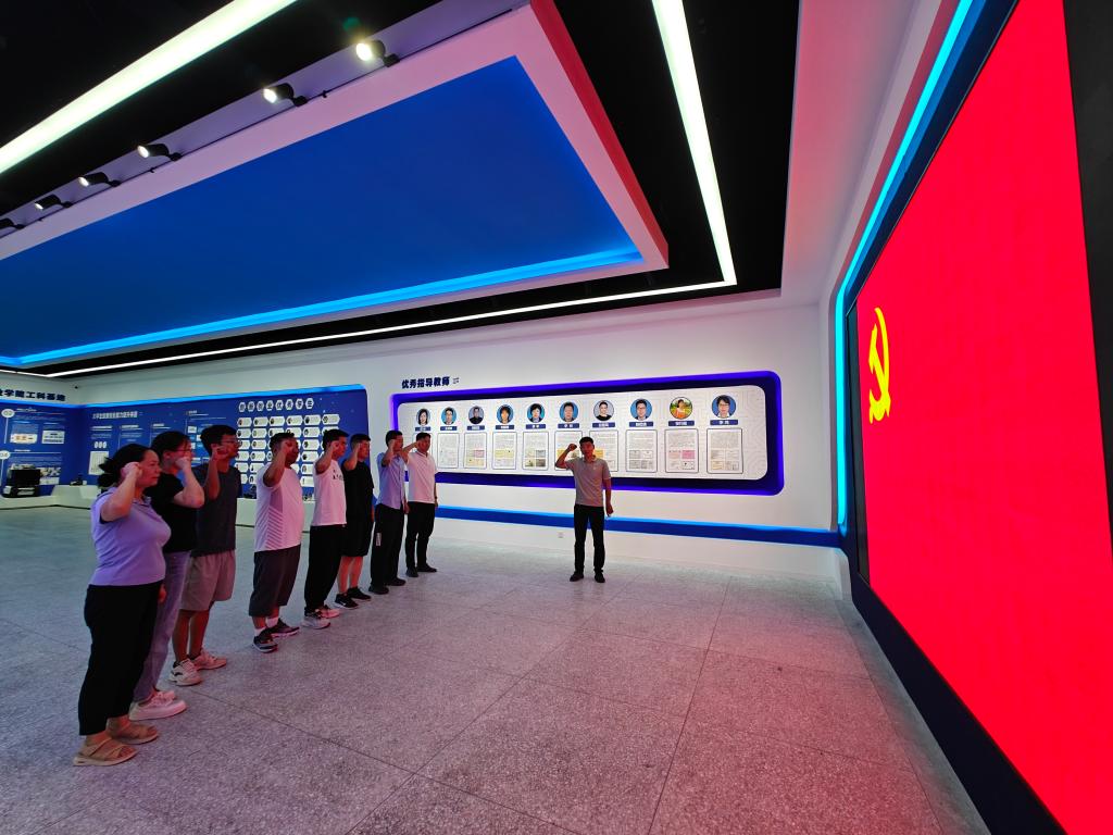 工科基地。全体党员整齐列队,面向鲜红的党旗,高举右拳,齐声宣读入党誓词,铿锵有力的誓言与字字千钧的承诺直击心灵,让党员们重温入党时的庄严承诺和坚定决心。