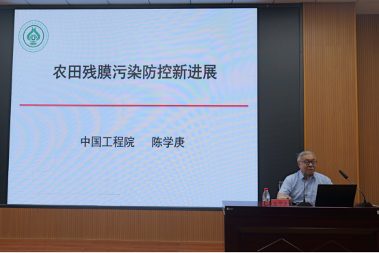 陈学庚院士以《我国农田残膜污染治理新进展》为题,紧扣我国农田残膜污染治理现状,全面介绍了地膜覆盖栽培技术的应用与发展、残膜回收存在的问题和待攻克的瓶颈、农田残膜污染治理的最新进展及可降解地膜的发展方向,陈院士呼吁绿水青山就是金山银山,治理废旧农膜“白色污染”是我们共同的责任,防止地膜污染对保持农业可持续发展具有十分重要的现实意义,是一件功在当今,利在千秋,为子孙后代造福的大事。